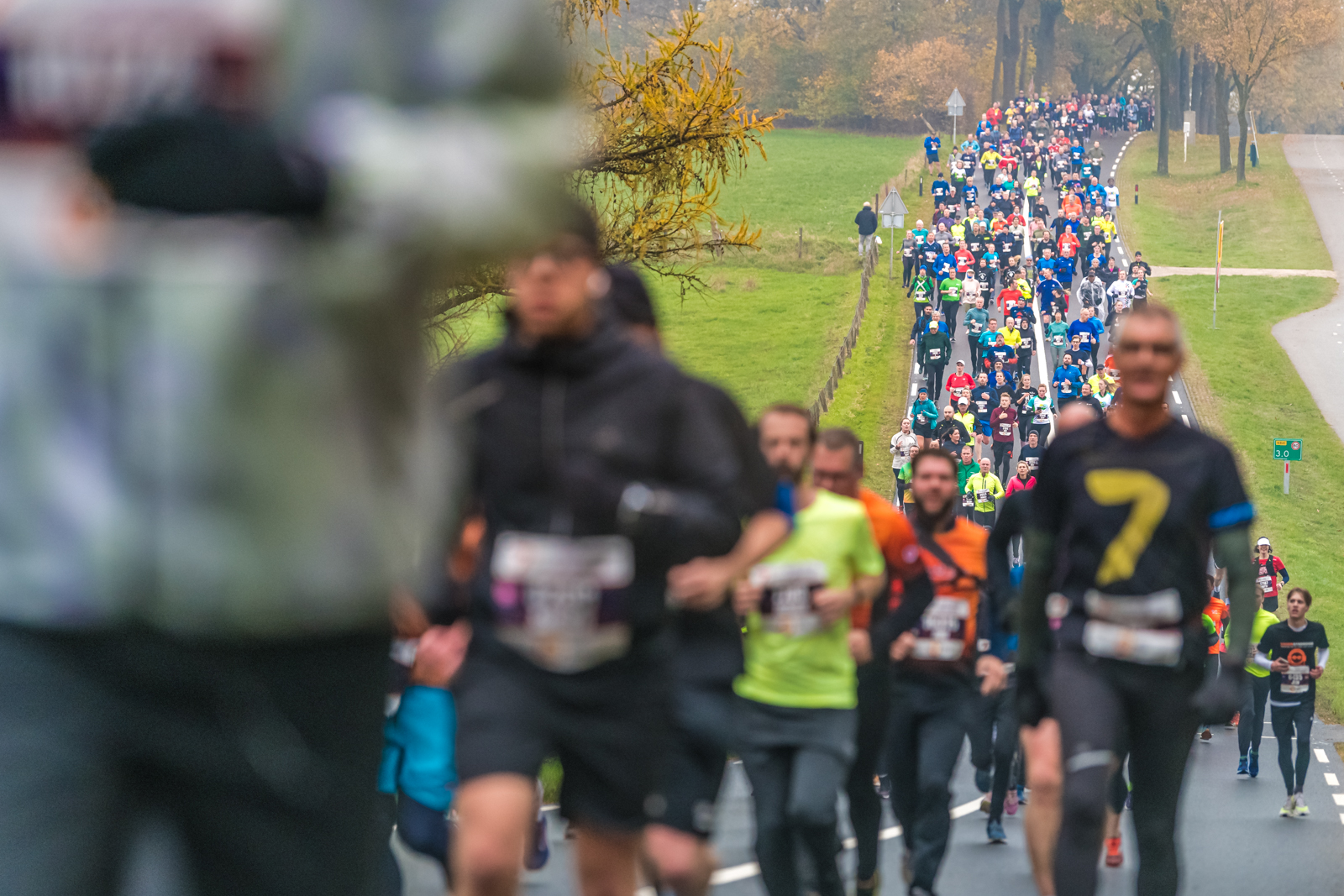 Prima droog loopweer, vijf graden, weinig wind, veel publiek, veel sfeer en het felgekleurde bladerdak langs de Groesbeekse heuvels vormden gisteren het decor van een weer geslaagde Zevenheuvelenloop in en rond Nijmegen.Het aantal deelnemers op de 7 kilometer op zaterdag en de 15 kilometer op zondag bedroeg respectievelijk 5000 en 14.400.